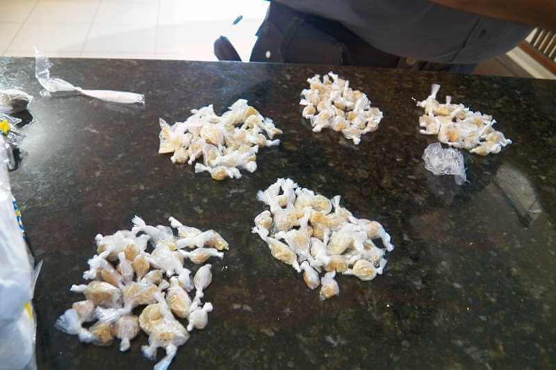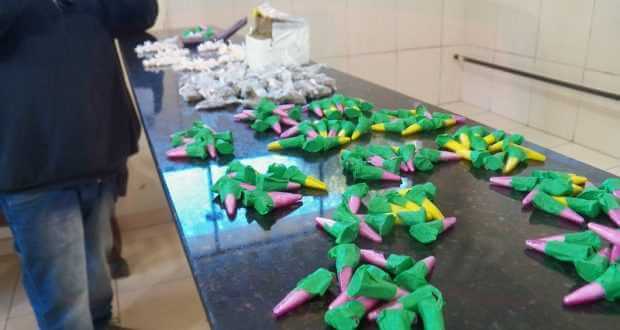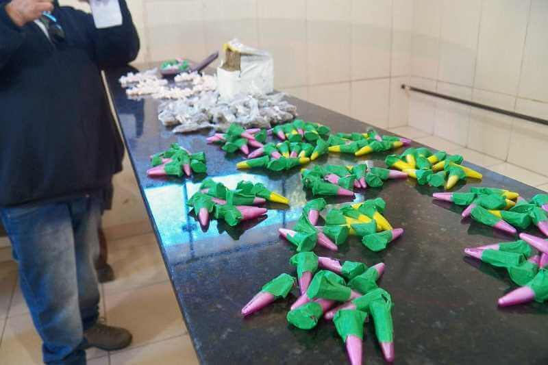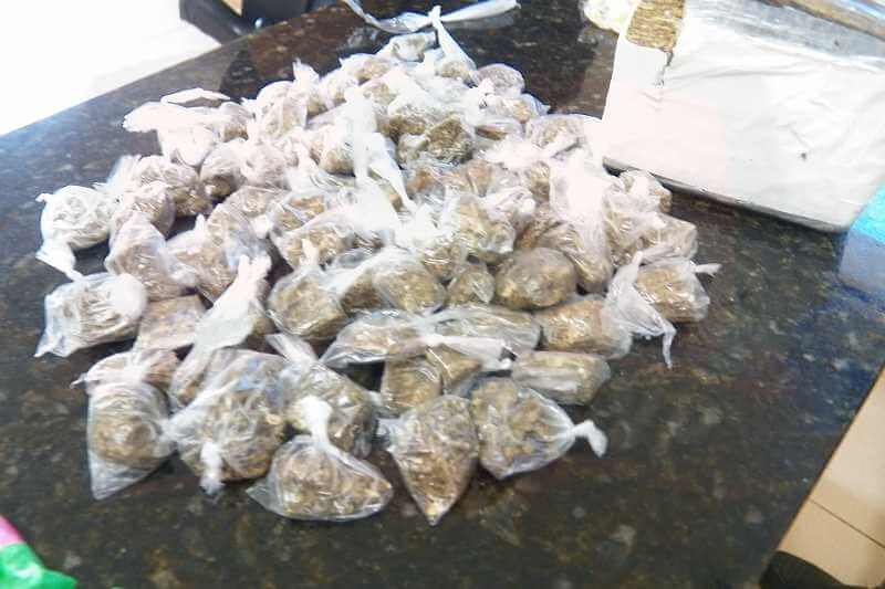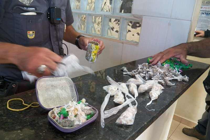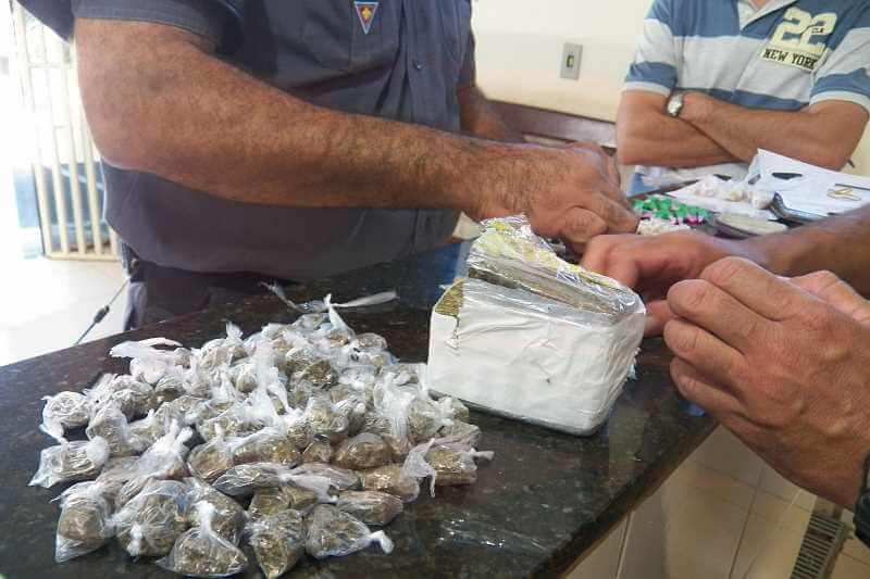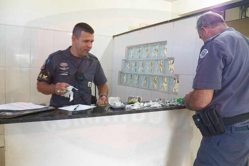 Policiais militares da ROCAM mais uma vez deram prejuízo para traficantes da zona sul de São Carlos-SP. Por volta das 11:00 deste sábado, 18 de junho de 2016, os policiais sargento Jenuy ( supervisor da ROCAM) e cabo Leandro estavam em patrulhamento pelos bairros da zona sul, quando na rua Três do bairro Antenor Garcia se depararam com um sujeito que saiu correndo e adentrou em uma casa, mas antes jogou ao solo um objeto contendo drogas. Os policiais correram atrás do mesmo, mas ele pulou o muro e fugiu. Em um terreno baldio os policiais localizaram uma sacola de plástico escondida e no seu interior maconha, cocaína e crack. No total foram apreendidos 120 pinos de cocaína, 254 pedras de crack, 87 trouxinhas de maconha e um tijolo de maconha. Apesar de não ter detido o traficante, os PMs deram prejuízo para o tráfico. Toda a droga foi apreendida no Plantão Policial.