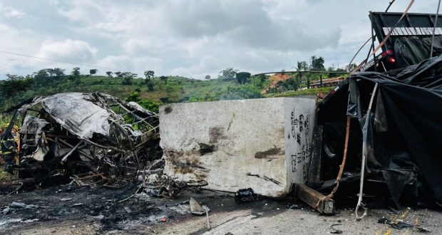 Pelo menos 30 pessoas morreram e 13 ficaram feridas em um grave acidente ocorrido na madrugada deste sábado (21-12-2024), na BR-116, Km 286, na localidade de Lajinha, em Teófilo Otoni, no Vale do Mucuri. De acordo com o Corpo de Bombeiros, a colisão envolveu um ônibus com aproximadamente 45 passageiros, uma carreta e um carro, por volta das 4h. O chamado inicial indicava um incêndio em um ônibus. No entanto, ao chegarem ao local, os militares constataram que o veículo, vindo de São Paulo, havia sofrido um acidente após o estouro de um pneu. O motorista perdeu o controle da direção, colidindo contra uma carreta. Um veículo de passeio que vinha logo atrás também bateu no ônibus, mas os três ocupantes sobreviveram.acidente na madrugada deste sábado (21/12