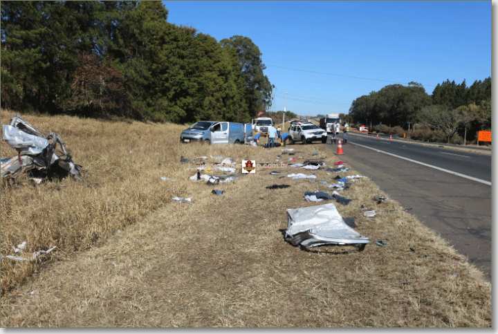 Três pessoas deste veículo morreram no local.  O Corpo de Bombeiros de São Carlo e a concessionaria que administra a rodovia foram acionados e  algumas vítimas foram socorridas para São Carlos. O www.comandovp.com.br esteve no local, mas  não pode confirmar os nomes e nem idade das vítimas. A delegada de Itirapina, Dra. Laís  Navarro esteve presente, junto com a Polícia Científica e o acidente será registrado em boletim de ocorrência  em Itirapina.