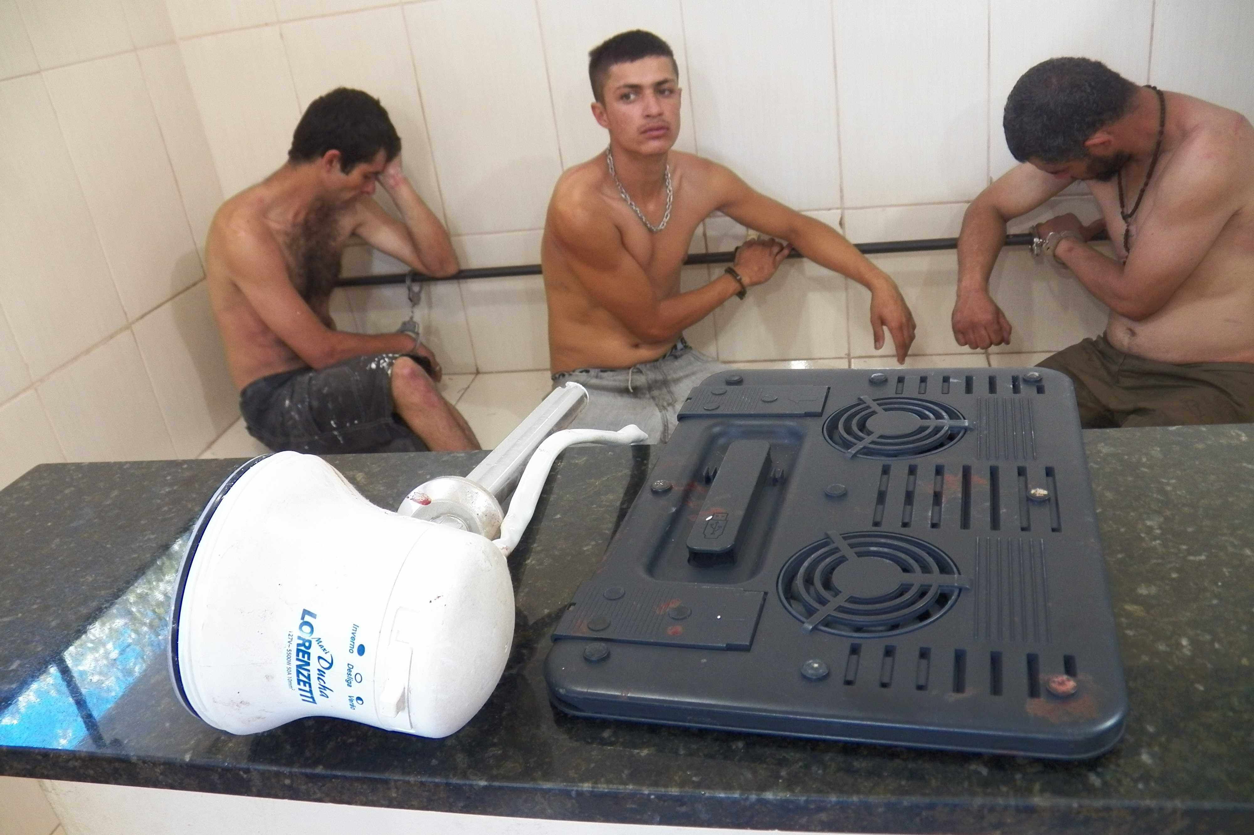 A Polícia Militar deteve e o delegado mandou três indivíduos para a cadeia nesta manhã de domingo, 28-08, após o furto em uma casa situada na rua Sebastião Machado, Parque Novo Mundo, São Carlos-SP.