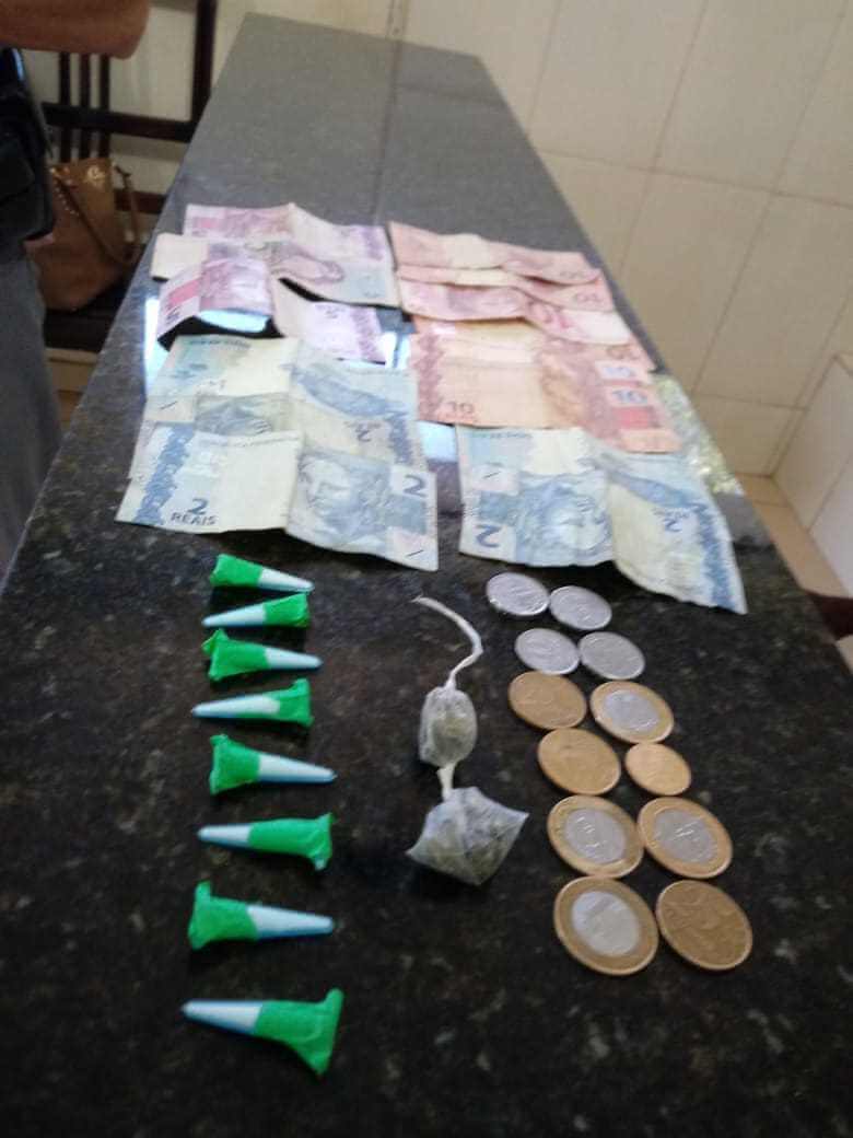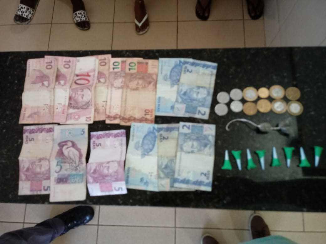 Segundo informações, os PMs Frisene e Morais patrulhavam o local quando abordaram três pessoas, sendo uma maior 34 anos, uma adolescente 13 anos e um adolescente 15. Próximo ao local, 8 pinos com cocaína, 2 invólucros de maconha e 91 reais foram localizados. As drogas estavam próximo as partes abordadas. Sendo que a menor de 13 anos assumiu ser a funcionaria do trafico os demais estavam apenas conversando.