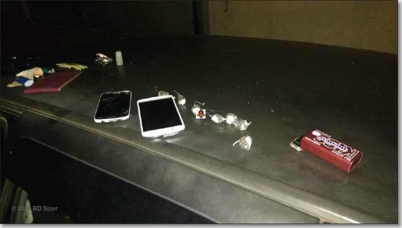 Segundo informações, por volta da 0:30 minutos o sargento, Roosevel e Júlio Cesar estavam em patrulhamento preventivo quando se depararam com dois homens e uma mulher em uma praça. Um homem de 26 anos, outro de 27 e a mulher de 32 foram abordos e com um dos indivíduos foram localizadas algumas porções de drogas. No carro do outro averiguado mais drogas foram localizadas. Com a mulher nada de ilícito foi encontrado. O trio disse que estava ali para consumir drogas. Todos foram encaminhados ao Plantão Policial e liberados.