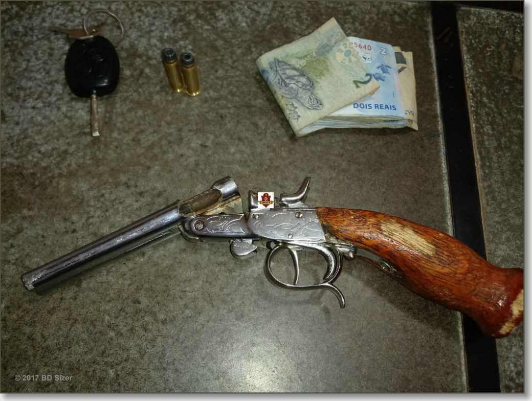 Após um roubo a um mercado ocorrido nesta tarde de sexta-feira, 29-12-2017, no bairro Vila Isabel, São Carlos-SP, a PM deteve três suspeitos e apreendeu uma arma de fogo tipo garrucha.