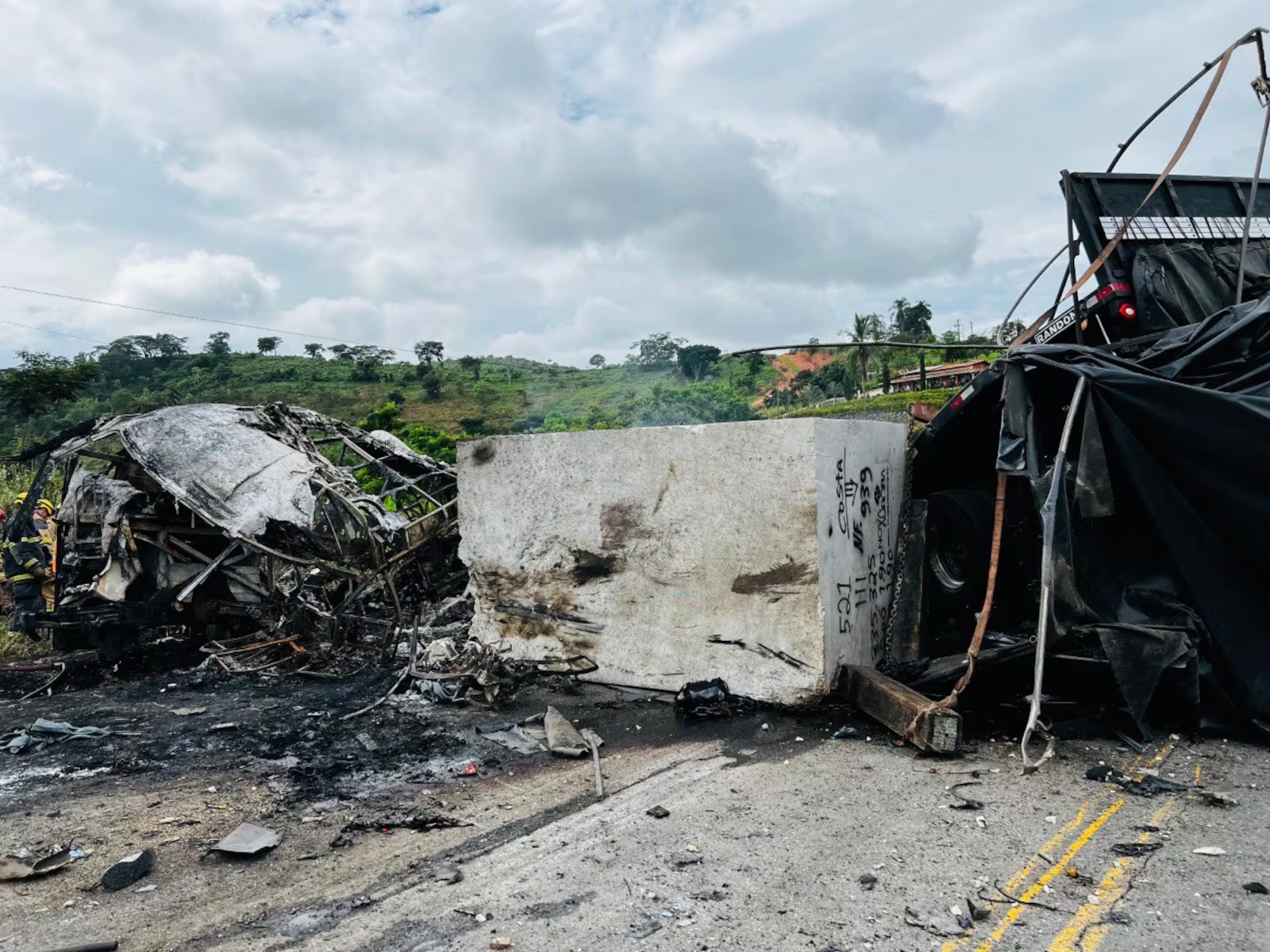 Um acidente envolvendo um ônibus, uma carreta e um carro na madrugada deste sábado (21/12/2024) deixou 38 mortos em Teófilo Otoni, Minas Gerais. A batida ocorreu na localidade de Lajinha, no km 286 da BR-116. Um pneu do ônibus, que vinha de São Paulo, estourou, o que fez com que o motorista perdesse o controle e batesse contra uma carreta. Um carro que vinha logo em seguida colidiu com o caminhão. Segundo autoridades, 13 das 45 pessoas que estavam ônibus saíram com vida e foram encaminhadas para atendimento médico. Todos os passageiros do carro estão bem. Os agentes utilizaram um guincho para puxar o ônibus e acessar o fundo do veículo. Tragédia em MG
