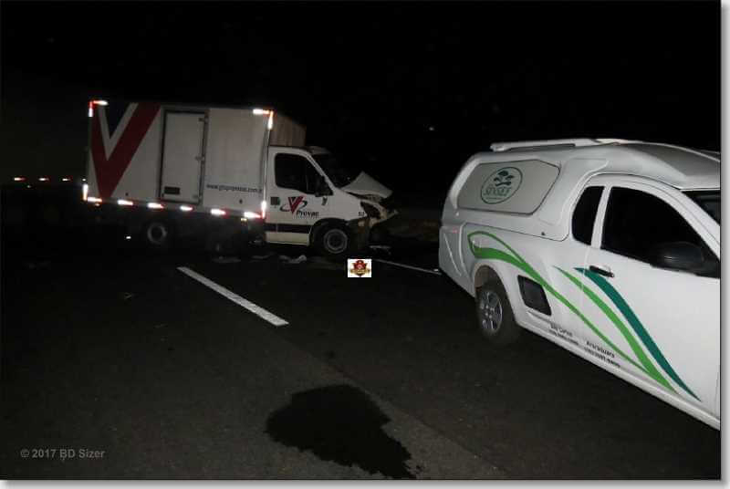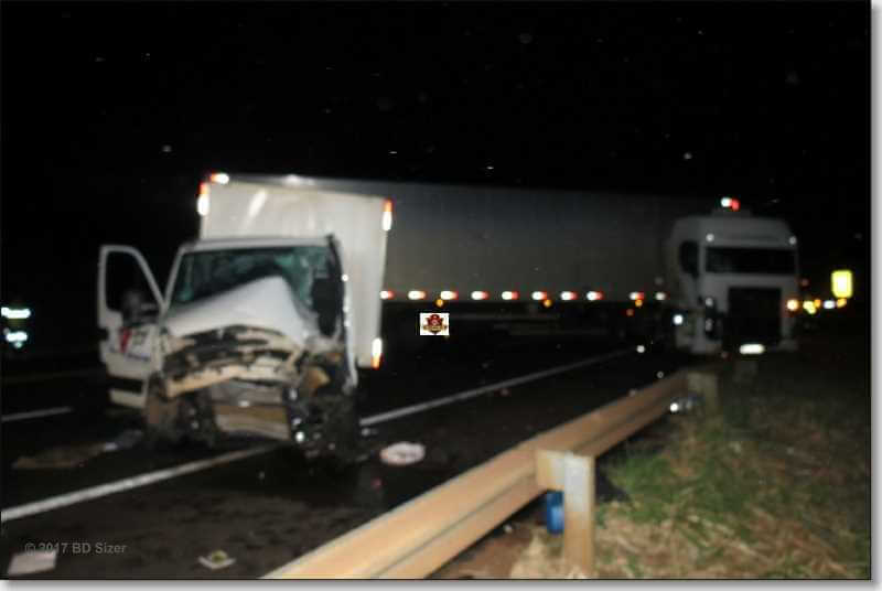 O motorista de 49 anos  relatou que conduzia sua carreta , placas de Bauru, no sentido Ribeirão Preto, quando no km 77 avistou o motorista do caminhão, com placas de Araraquara, foi fazer uma ultrapassagem proibida e a colisão foi inevitável. Unidades de resgate do Corpo de Bombeiros estiveram no local, mas o motorista José Alpanhez, de 58 anos, não resistiu aos ferimentos e morreu no local.