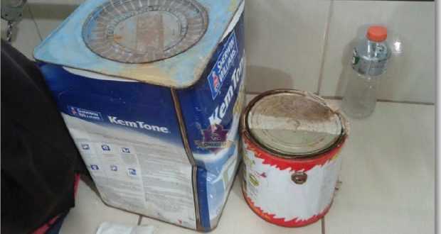 R.L.B, foi detido abordado na rua Sergipe. Os policiais relataram que receberam denúncia que um indivíduo havia pulado o muro da escola e saído carregando duas latas de tinta. Ao ser abordado, foi encaminhado ao Plantão Policial, onde conversou com nossa equipe e disse que já tem duas passagens policiais. De acordo come ele, uma por roubo e a outra por furto. No Plantão o delegado optou por apreender as latas e liberar o averiguado.