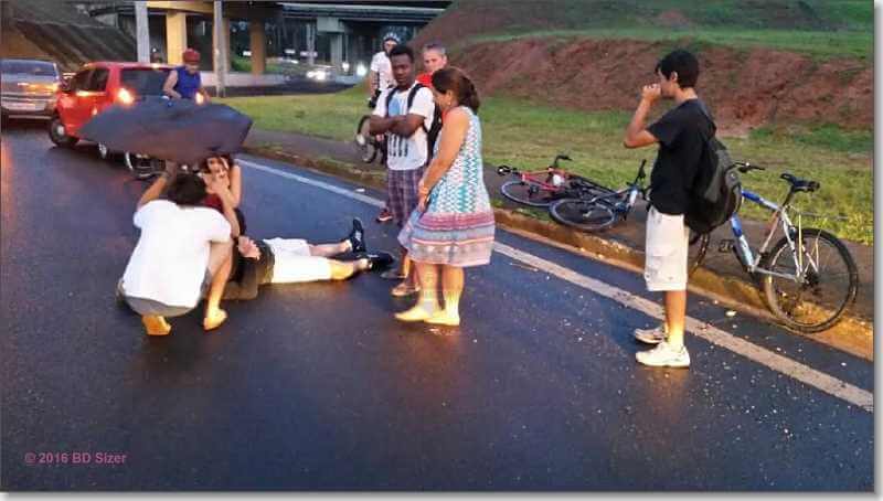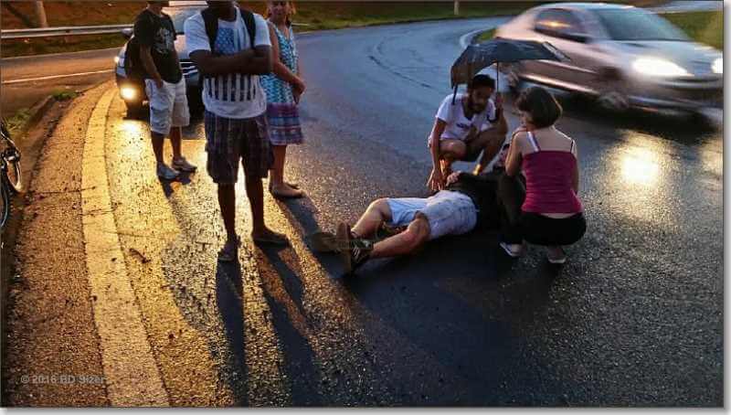 Um estudante identificado como Emerson Martinez, idade não informada, ficou ferido no inicio da noite desta terça-feira, 29-11-2016, ao sofrer uma queda de bicicleta na rotatória da Universidade Federal de São Carlos-DP.