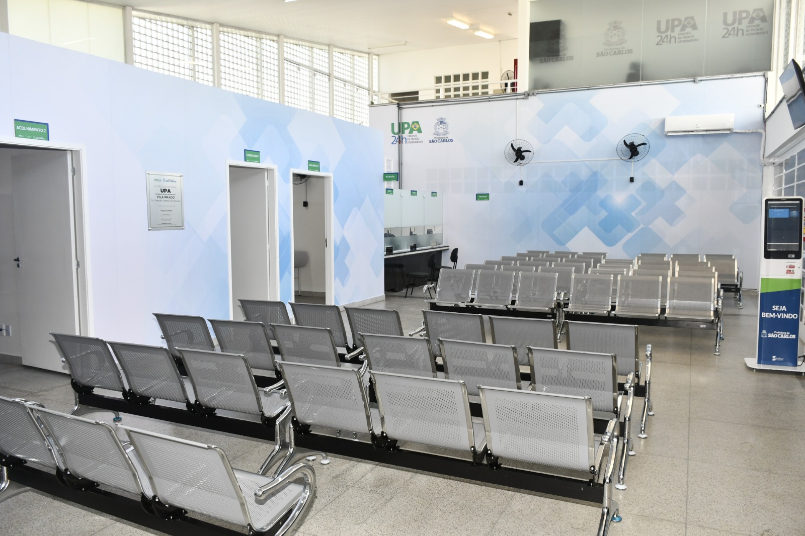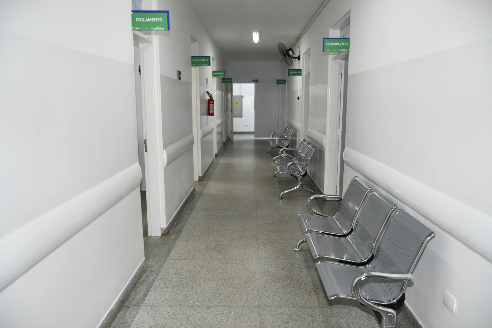 Também foram instaladas novas grelhas, trocados os portões de acesso à ambulância, feita manutenção geral no forro, construída mais uma sala de acolhimento, instalada película de controle solar nos vidros, recuperados os canteiros e feitos reparos nas calçadas, instalado ar condicionado na recepção e consultórios, realizada a pintura interna e externa total e instalada identificação visual em ACM nas salas internas e fachada.