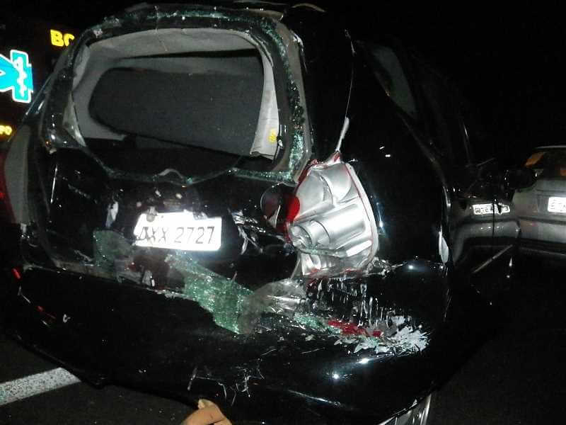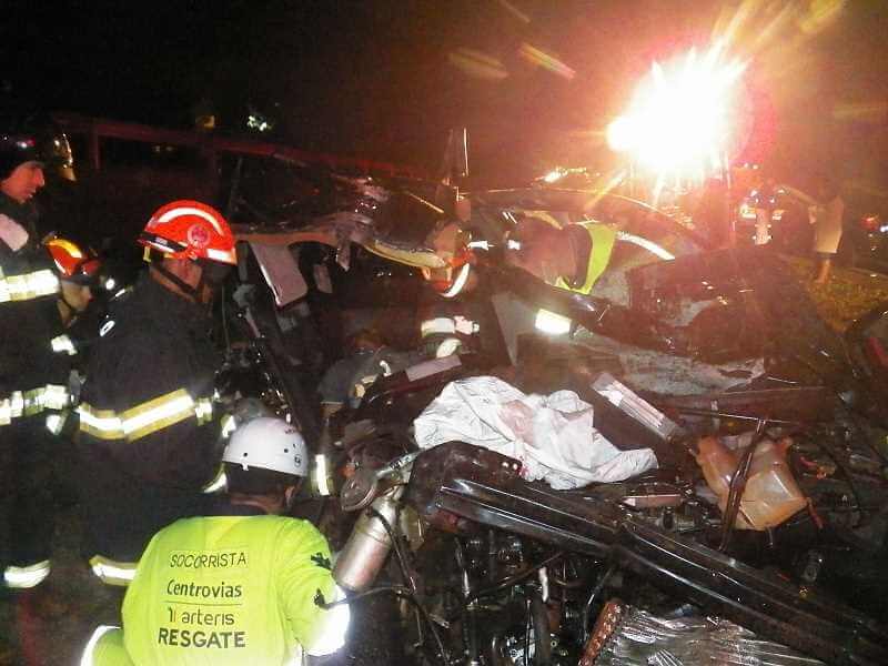 O trânsito estava lento devido um tombamento de um caminhão ocorrido durante a tarde. Segundo testemunhas, o local estava bem sinalizado e carros estavam parados na rodovia esperando para continuar viagem, quando um veículo Eco Sport da cor preta, placas de Pirassununga colidiu na traseira de um caminhão, placas de Americana, este colidiu na traseira de um Honda Fity, o qual acabou atingindo um Palio de São Carlos. Com a fortíssima colisão o veículo Eco Sport capotou no canteiro central e os dois passageiros morreram no local. O motorista Osvaldinho Aparecido Magrini, 36 anos, ficou em estado grave e foi socorrido pela concessionária Centro Vias. O SAMU e Corpo de Bombeiros estiveram no local e acionaram também a Policia Militar Rodoviária. Os feridos foram somente do veículo Eco Sport.