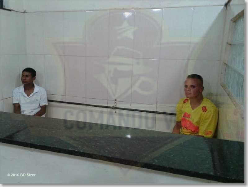 Daniel Fernando de Farias Tochio, de 18 anos e David Willian da Silva, de 21, foram detidos nesta noite de segunda-feira, 31-10-2016, após a PM fechar o cerco contra criminosos que tentaram assaltar um comércio na rua Eliziario Fernandes de Araújo, bairro Cruzeiro do Sul, São Carlos-SP.