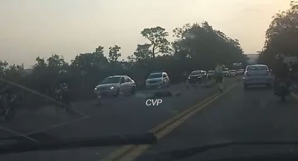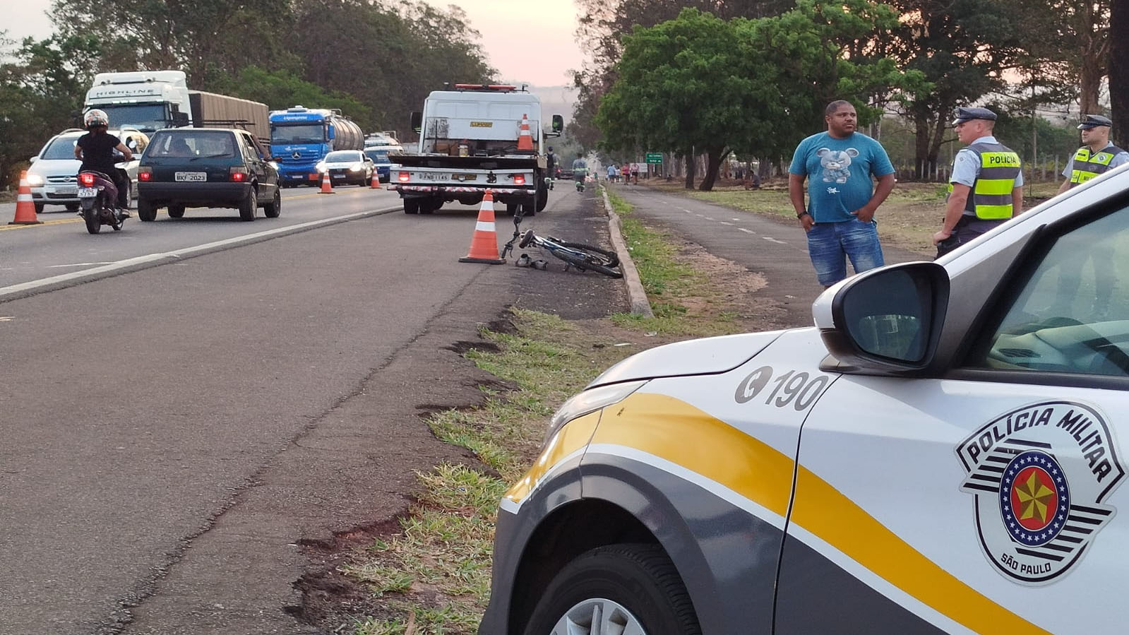 Neste momento o SAMU está em um grave acidente na Rodovia SP-215, região do bairro Cidade Aracy, São Carlos-SP, onde uma moto e uma bicicleta colidiram.