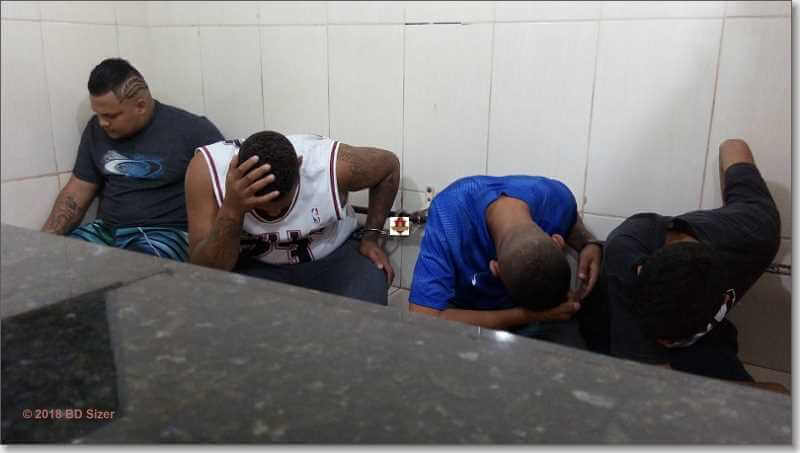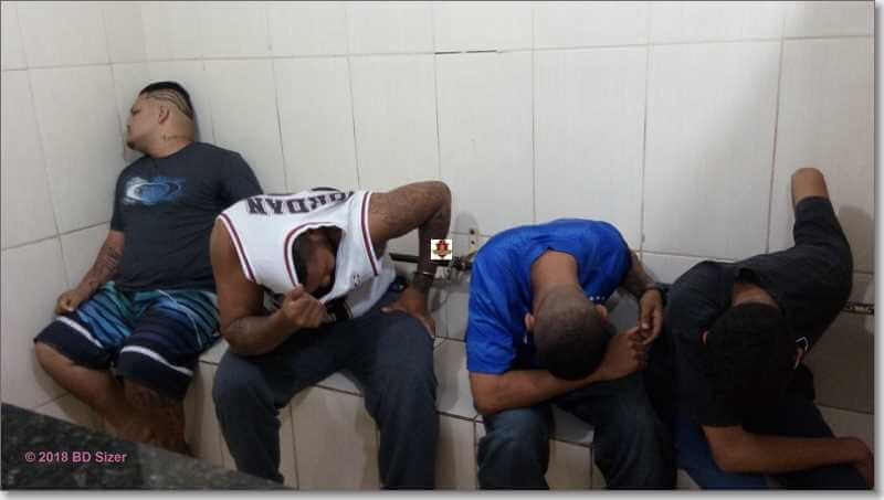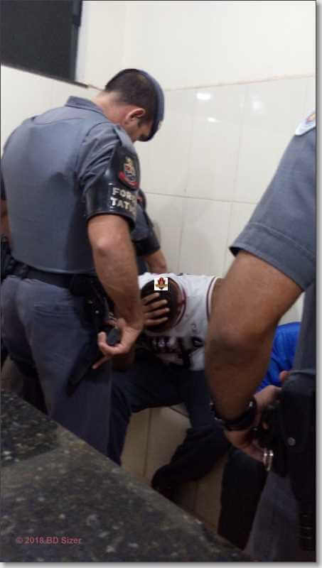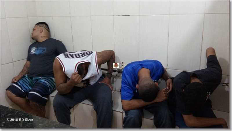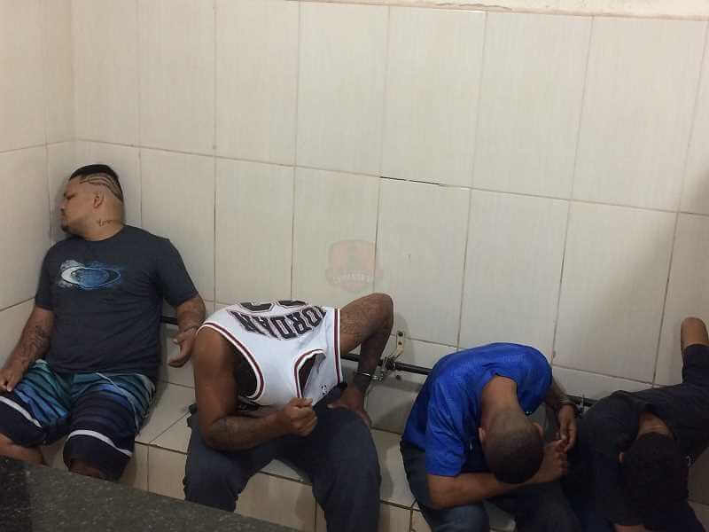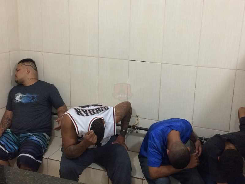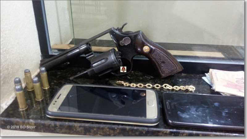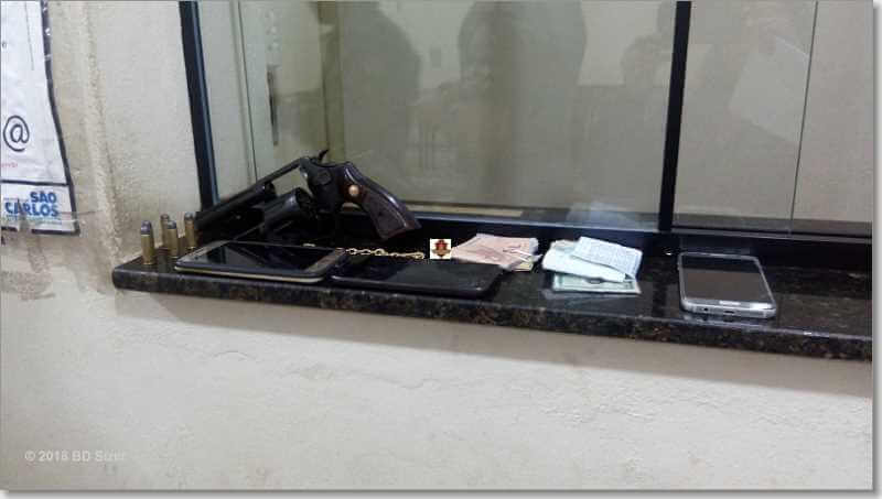 Segundo informações, 4 marginais em poder de arma de fogo adentraram ao local e mediante muito gritos e ameaças ordenaram que todos deitassem no chão e praticaram o roubo. Eles roubaram também bolsas, carteiras e celulares dos clientes. Depois fugiram, mas para o azar dos mesmos, dentro de uma bolsa havia um celular que rastreava. A vítima dona do celular passou todas as coordenadas para a PM. O celular indicava que estava pela rodovia Washington Luís, sentido Ibaté. Um cerco foi montado e o carro que os suspeitos estavam foi abordado na entrada do bairro Jd. Cruzado. No veículo, segundo a PM, foram localizados diversos objetos roubados e também um revólver calibre 38 municiado. Os detidos foram eles Caique Junior Machado. C, de 24 anos, morador no bairro Jd. Medeiros em São Carlos, Vitor Afonso. RT. G, de 21 anos, morador no bairro Jd. Cruzado em Ibaté, Jhonatan. L. D, de 22 anos, morador no bairro Jd. Cruzado II e Luís. E. de Jesus, de 19, morador no Icaraí, em Ibaté. Todos encaminhados ao Plantão Policial, autuados em flagrante por roubo pelo delegado, Dr. Caio Iberé Gobato e recolhidos ao Centro de Triagem de São Carlos.