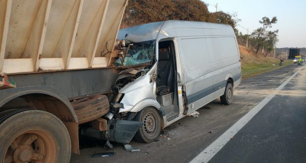 Um motorista ficou ferido nesta manhã de quinta-feira, 29/09/2024, ao colidir uma Van na traseira de um caminhão no km 227 da rodovia Washington Luís, São Carlos-SP.