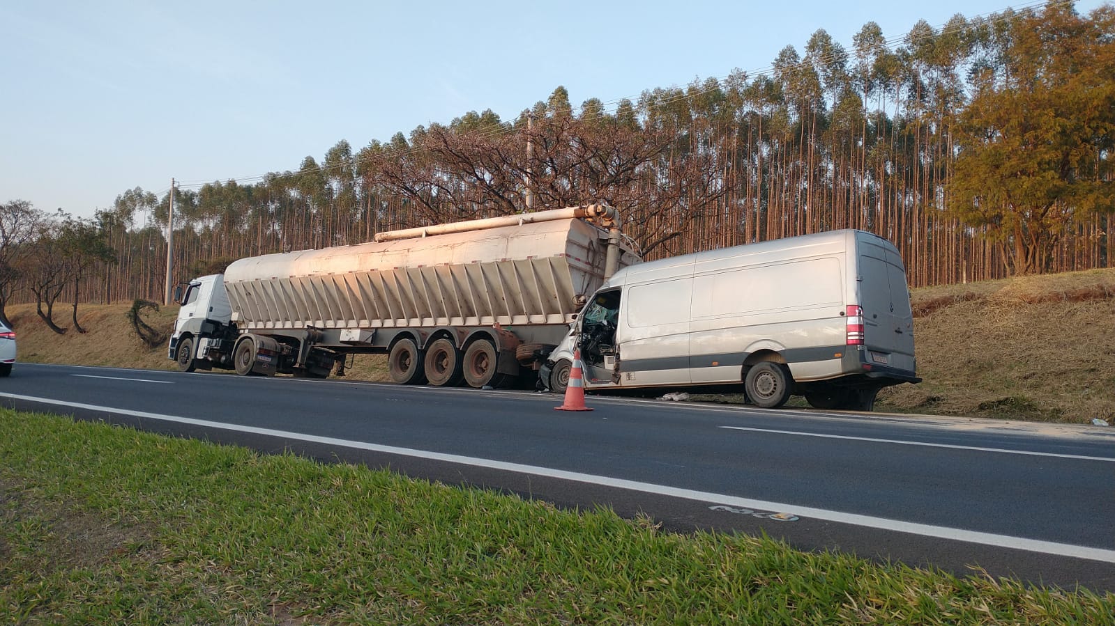 Um motorista ficou ferido nesta manhã de quinta-feira, 29/09/2024, ao colidir uma Van na traseira de um caminhão no km 227 da rodovia Washington Luís, São Carlos-SP.