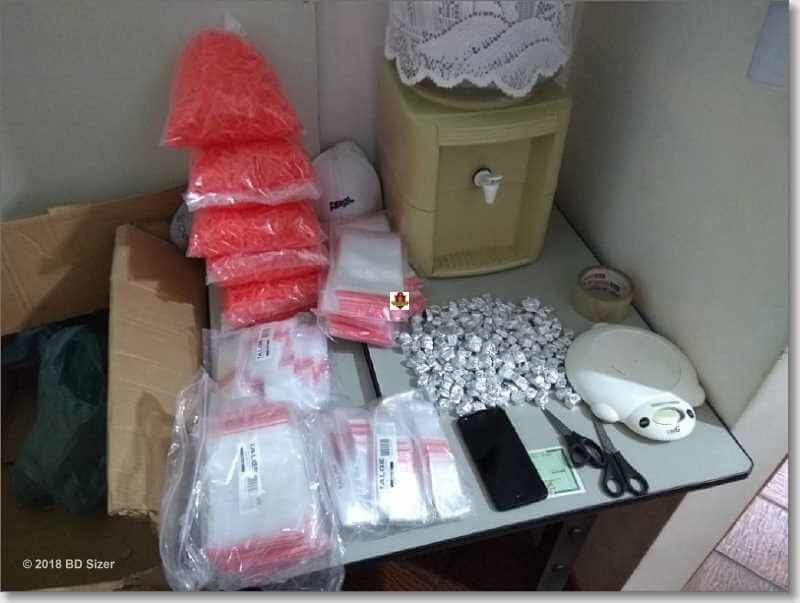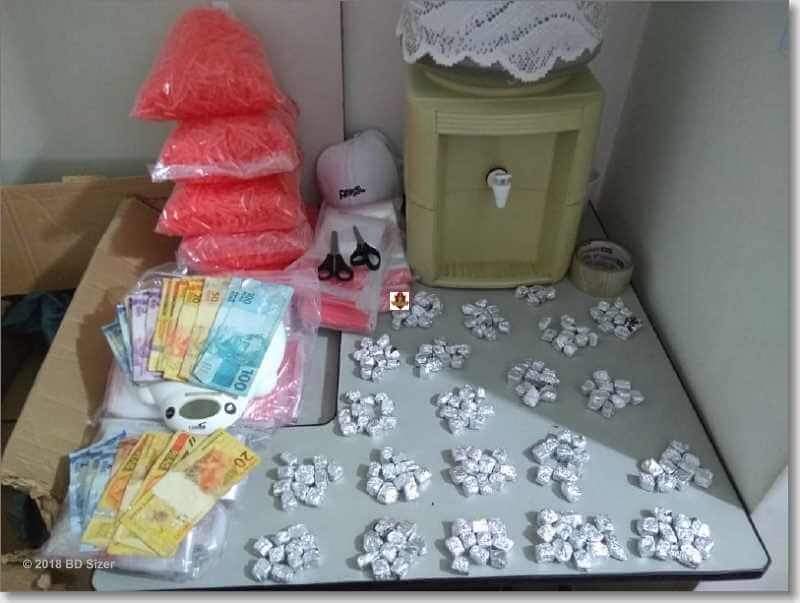 Segundo informações, a ROCAM estava na região central quando um rapaz conduto de um Palio ficou nervoso e deixou o carro apagar por três vezes. Os policiais então resolveram verificar o que de fato estava acontecendo e no interior do veículo foram localizados plásticos normalmente usados para embalar drogas. O motorista disse desconhecer o objeto. Ambos foram questionados de nas suas casas havia algo licito e disseram que não. A PM resolveu ira até as residências dos averiguados e na casa de L.S.L, de 22 anos, foram localizados drogas e materiais usados na embalagem de entorpecentes. Ambos foram encaminhados à Delegacia de Investigações Sobre Entorpecentes (DISE), L.S.L, foi autuado em flagrante por tráfico de drogas e recolhido ao Centro de Triagem de São Carlos. No total foram apreendidas dezenas de pinos vazios e 207 porções de drogas. O Palio foi recolhido administrativamente . O condutor do mesmo foi liberado.