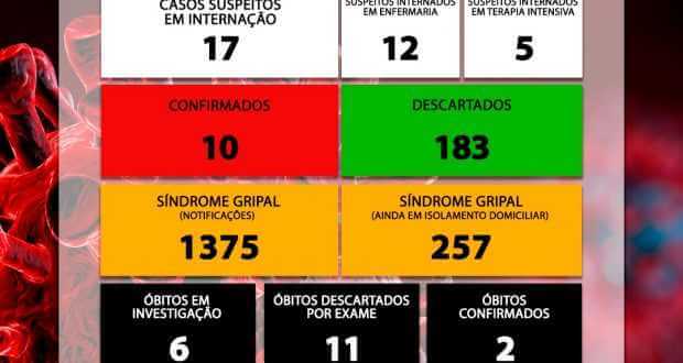 São Carlos continua neste momento com 10 casos positivos, 2 mortes confirmadas e outras 6 suspeitas em investigação. 183 casos suspeitos já foram descartados, sendo que 10 exames negativos foram liberados hoje pelo Instituto Adolfo Lutz, entre eles de duas pessoas que já morreram, uma de São Carlos e outra de município da região, mas que ficou internada em hospital aqui da cidade.