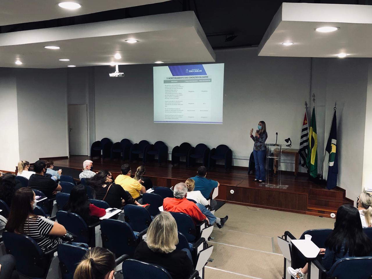 Fernanda Cereda, supervisora da Vigilância Sanitária, fez a apresentação do protocolo que foi amplamente debatido com as autoridades de saúde. O protocolo também segue as normativas do Plano SP.