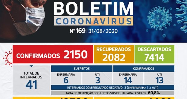 Na rede privada 3 pessoas estão internadas na enfermaria com suspeita da doença. Na UTI 1 pessoa está internada com COVID-19. Esses números já estão contabilizados no total de internações.