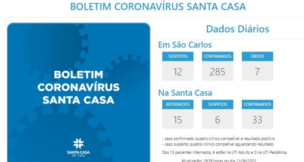 INTERNADOS POR COVID-19 NA SANTA CASA SÃO CARLOS – 11/06/2020