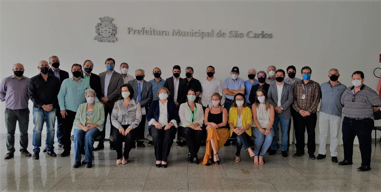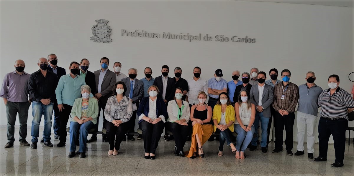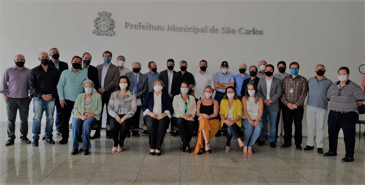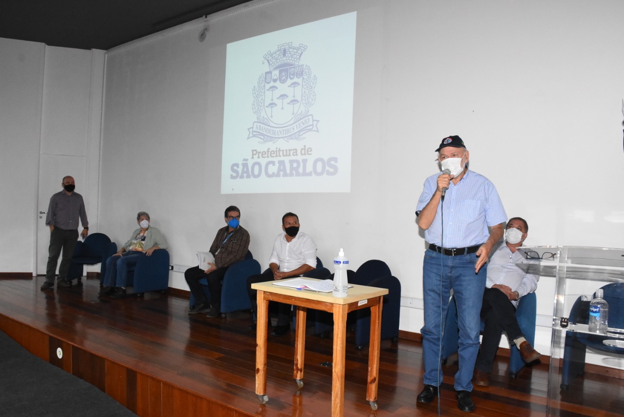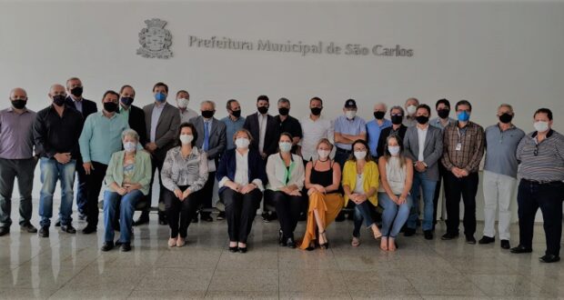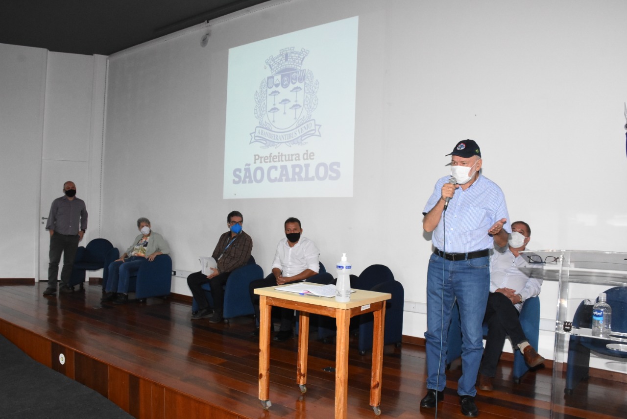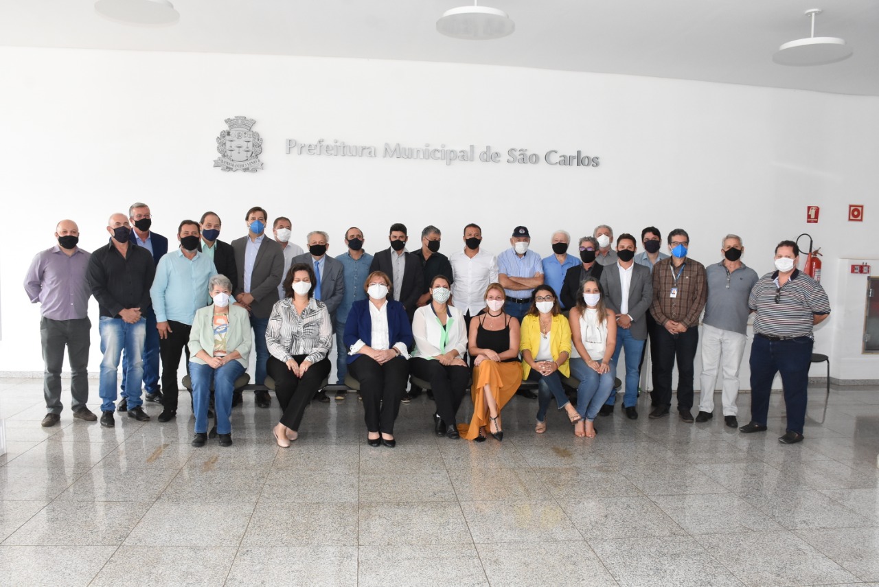 O prefeito Airton Garcia e o vice-prefeito Edson Ferraz empossaram na manhã desta segunda-feira (04/01/21), no auditório do Paço Municipal, os secretários da gestão 2021-2024. Além dos 19 secretários municipais, tomaram posse o presidente do Serviço Autônomo de Água e Esgoto (SAAE), da Fundação Educacional São Carlos (FESC) e da Fundação Pró-Memória. O diretor presidente da Progresso e Habitação São Carlos (PROHAB), será empossado após a reunião do Conselho para a escolha do dirigente, que deve acontecer no próximo dia 19 de janeiro.