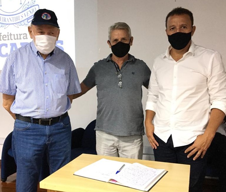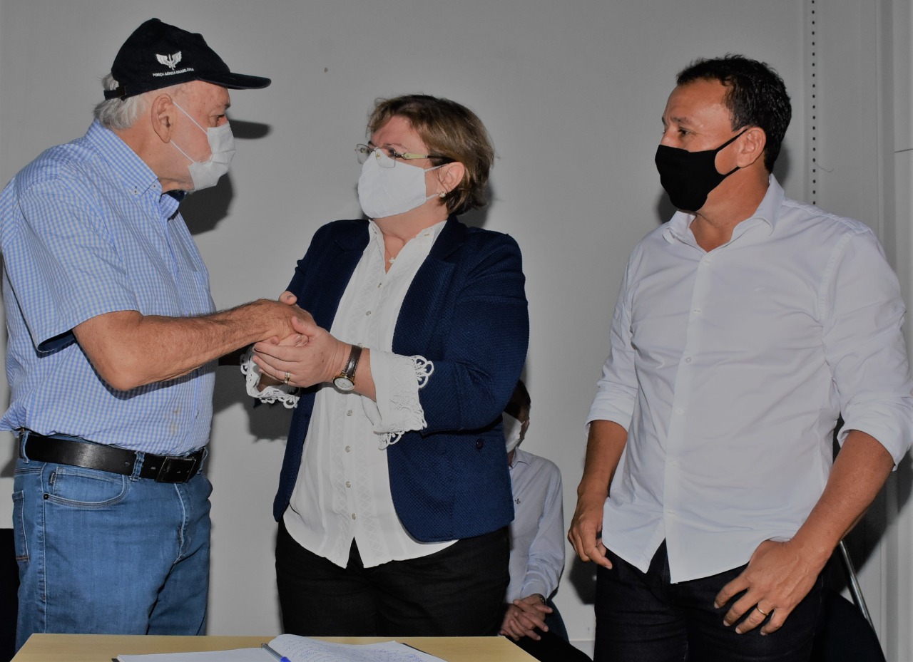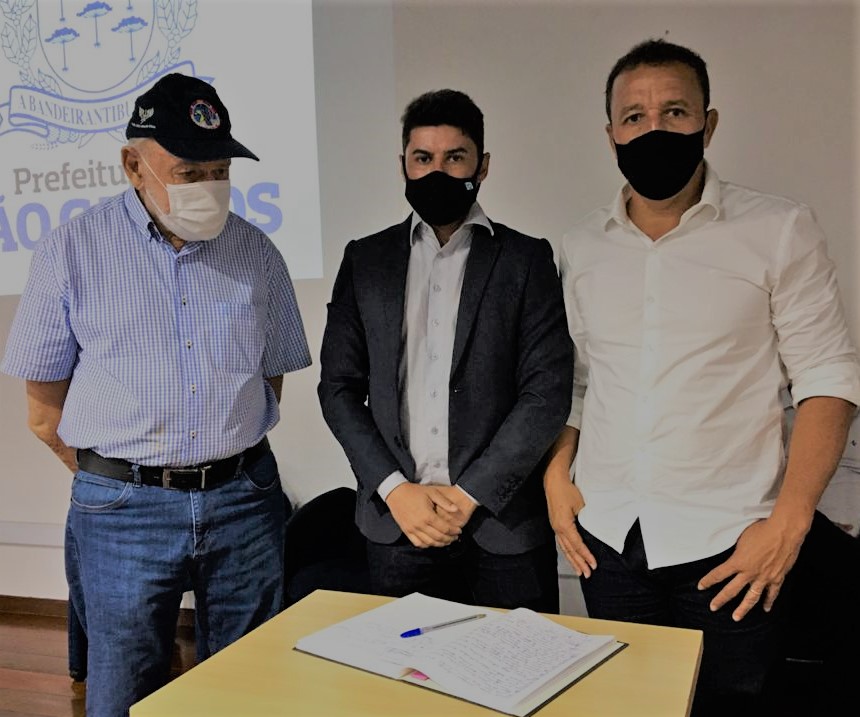 Em cerimônia fechada devido ao cumprimento ao distanciamento social imposto pela COVID-19, os secretários que continuam no governo, assim como os novos secretários nomeados, antes de assinar a ata de posse participaram de uma reunião de alinhamento das propostas para a próxima gestão de Airton Garcia.