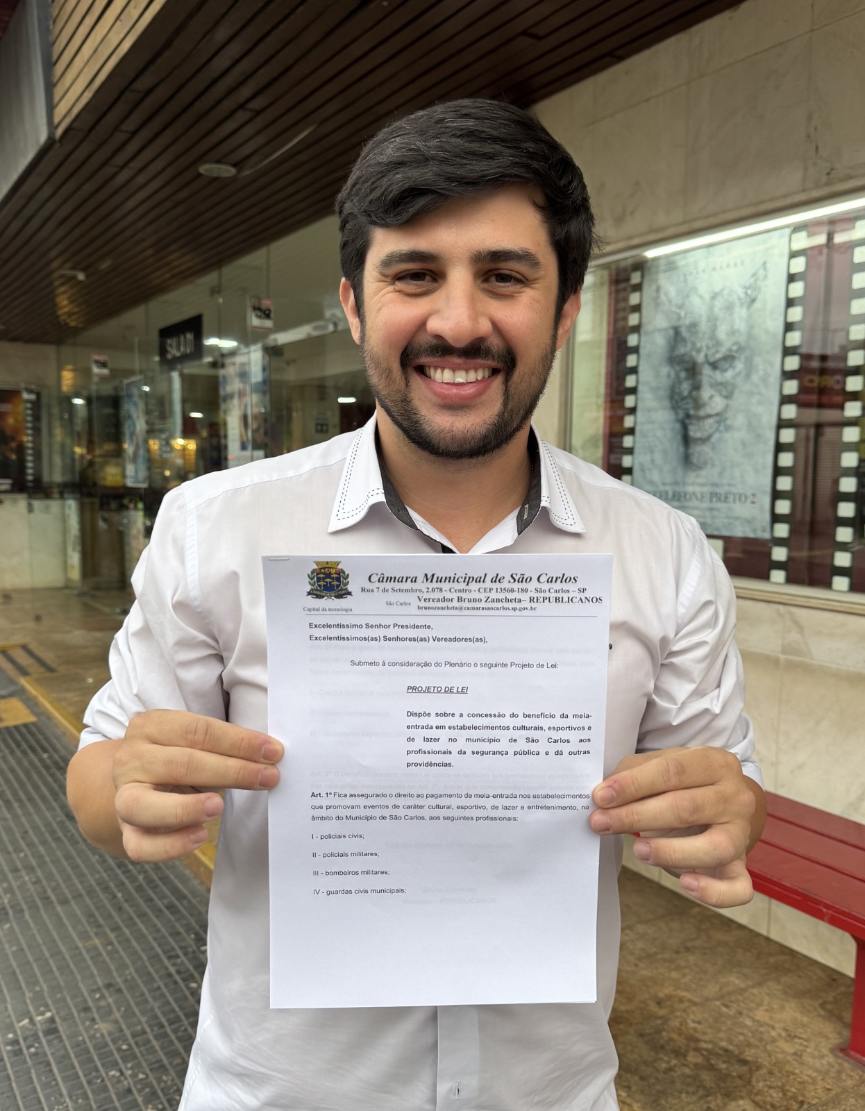 O vereador Bruno Zancheta (REPUBLICANOS) protocolou na Câmara Municipal de São Carlos um Projeto de Lei que garante o direito à meia-entrada em eventos culturais, esportivos e de lazer para os profissionais/agentes da segurança pública no município.