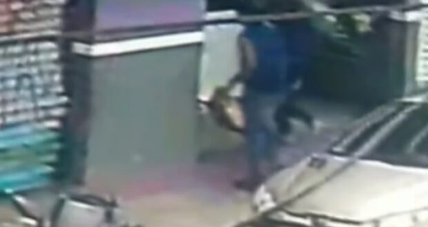 Nas imagens, é possível ver dois suspeitos caminhando pela rua. Um deles segura uma caixa de papelão, enquanto o outro carrega bexigas. Ambos baixam a cabeça, para não serem reconhecidos.
