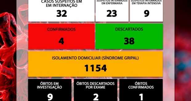 Portanto o município contabiliza neste momento 4 casos positivos, com uma morte confirmada, outras 9 mortes SUSPEITAS continuam em investigação. 38 casos já foram descartados, já que o IAL liberou outros 2 resultados negativos para a COVID-19.