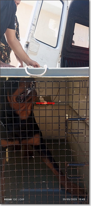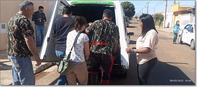 Após K. V. M, de 43 anos, o qual ficou em estado grave após ocorrer uma explosão de gás nesta manhã de terça-feira, 20 de maio de 2025, na Rua Francisco Correa Bueno, bairro Jd. Embaré, São Carlos-SP, seus dois cães foram retirados do local. Gás de cozinha explode e deixa homem de 43 anos em estado gravíssimo
