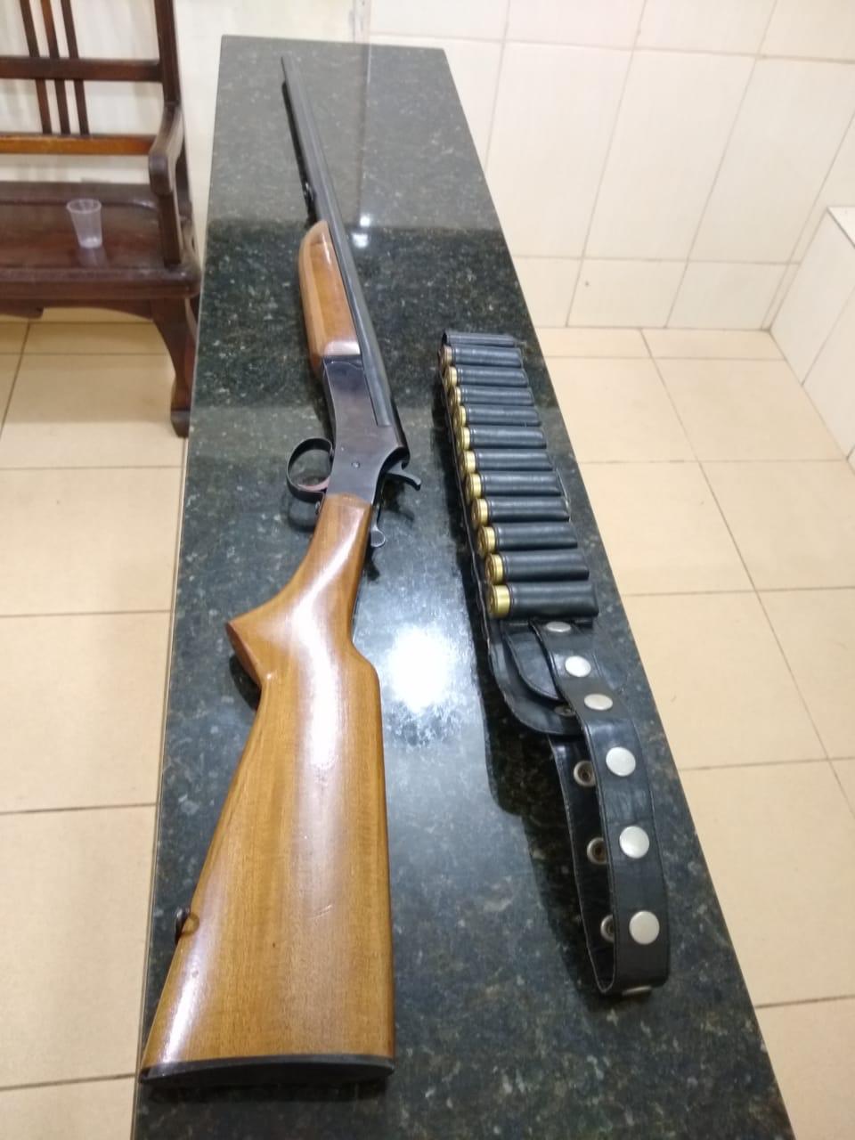 Os policiais fizeram contato com um dos proprietários M. T. L, o qual informou que indivíduos tentaram entrar na chácara e efetuaram disparos de arma de fogo e que para tentar assustar os bandidos ele teria efetuado um disparo para cima com uma espingarda calibre 12. Indagado a respeito da documentação do referido armamento, M. T. L. disse que não possui.O mesmo foi detido por posse irregular de arma de fogo e conduzido ao Plantão Policial. O delegado de plantão autuou o detido em flagrante , mas o mesmo pagou a fiança no valor de R$ 1.100,00 e foi liberado.