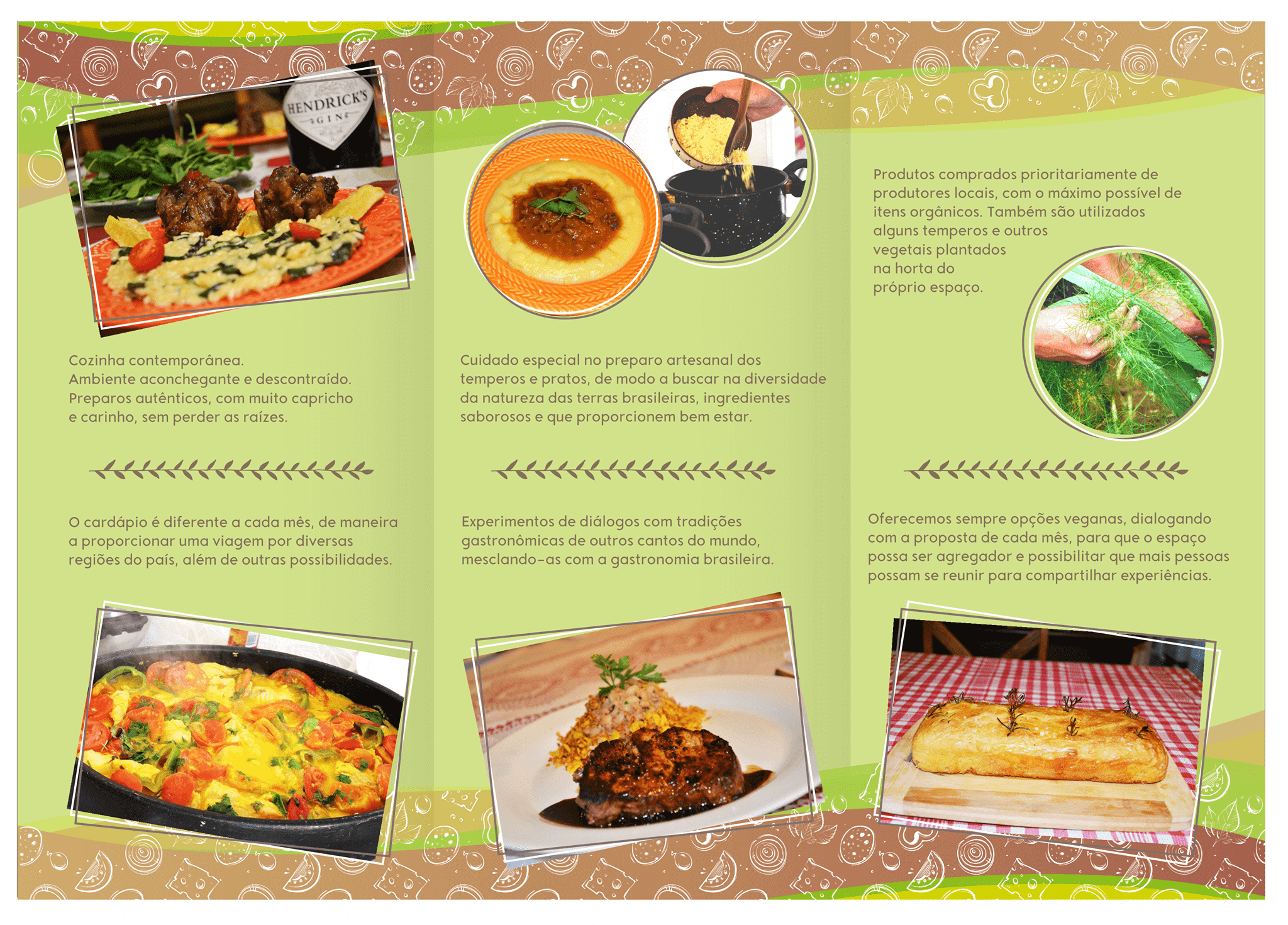 Informações sobre o espaço ó: Toca do Graxaim Cozinha contemporânea brasileira. Ambiente aconchegante e descontraído. Preparos autênticos, com muito capricho e carinho, sem perder as raízes. O cardápio é diferente a cada mês, de maneira a proporcionar uma viagem por diversas regiões do país, além de outras possibilidades. Cuidado especial para o preparo artesanal dos temperos e dos pratos, de modo a buscar na diversidade da natureza das terras brasileiras, ingredientes saborosos e que proporcionem bem estar. Experimentos de diálogos com a gastronomia de outros cantos do mundo, mesclado com a gastronomia brasileira. Produtos comprados prioritariamente de produtores locais, com o máximo possível de itens orgânicos. Também são utilizados alguns temperos e outros vegetais plantados na horta do próprio espaço. A proposta é fortalecer e contribuir com a difusão da permacultura e da agroecologia. Oferecemos sempre opções veganas, dialogando com a proposta de cada mês, para que o espaço possa ser agregador e possibilitar que mais pessoas possam se reunir para compartilhar experiências.